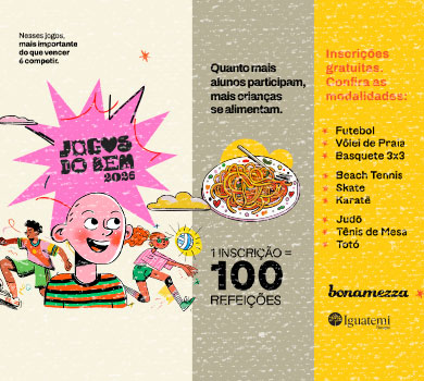 Um torneio intercolegial beneficente que transforma cada inscrição em refeições. Os Jogos do Bem são uma iniciativa do Iguatemi